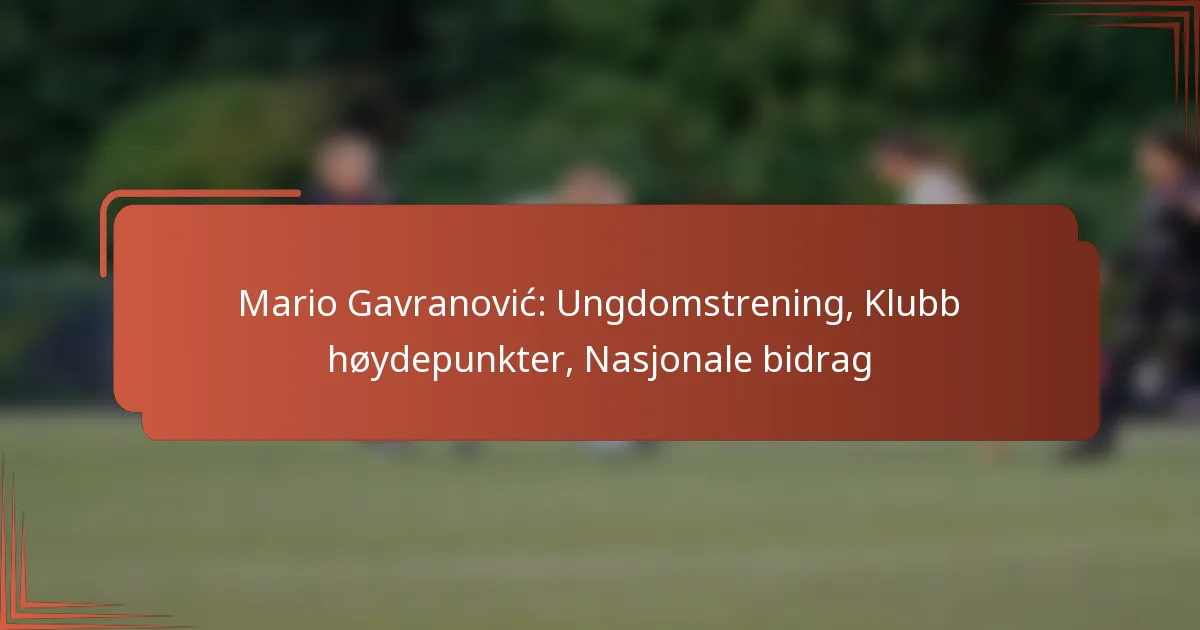 Mario Gavranovićs bakgrunn innen ungdomstrening er preget av hans tidlige involvering i ulike klubber og akademier som formet hans ferdigheter og forståelse av fotball. Hans utvikling ble påvirket av bemerkelsesverdige trenere og konkurranseopplevelser som la grunnlaget for hans profesjonelle karriere.
